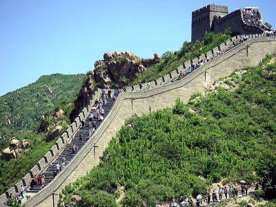高速を降りてから更に15分程走ると地上最大の人工建造物万里の長城に到着です。