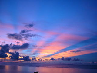 ホテルへ戻り買出しの荷物を置いて散歩に出かけるとプールサイドから写真のような空が見られました。 |