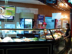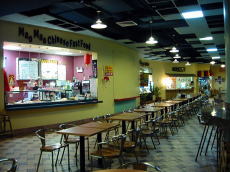 | 昼食(でも時間は午後4時くらい)は併設されている「ギブソンズ・フードコート」で。 天井が高く開放的な空間にたくさんのテーブルが並び、その周りを囲むように10の飲食店が並びます。 「パンダ・キング」というお店で飲茶があったのでちょっと気になったのですが、 とってもお腹が空いていてお米が食べたかったので無難に韓国料理にしました。 フードコ−トは肉の味付けは全般的に濃い目ですが、私はお肉やお米の臭みを感じないのでこの方が好み。 |
