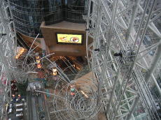 MTRに乗りランガム・プレイス見学に旺角へ。 間もなくオープン2周年を迎えるランガム・プレイスですが、前回香港を訪れた直後のオープンだったのでまだ一度も行ったことがないのです。詳しい地図がなくても全く問題ない位、下町のど真ん中に近代的なビルがどど〜んとそびえ立っていました。 ガイドブックでよく紹介されている巨大なオブジェは、ショッピングモールの4階にあります。吹き抜けでガラス張りのアトリウムには例のオブジェとカフェが数店。明るくて、近代的で、個性的な建物。旺角っぽくない(笑)