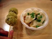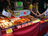| ロイスカフェでは腹八分目に抑えて南京町へ。買い食い天国でお昼ご飯の続きだ〜 南京東路に沿った両側300メートルにぎっしりとお店が並んでいて、雨の中店員さんの呼び込みも熱が入って いました。 |