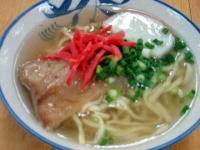 チェックインを済ませて真っ先に向かったのは「第一牧志公設市場」。 お目当ては市場2階の食堂、ここでまず最初に沖縄そばを食べるつもりなのです。 2階へ上がると壁に沿って10軒の食堂が並び、中央には土産店があります。 沖縄そばはどこもメニューにもあるのでひと通りぶらっと眺めてから、 客引きをしているおばちゃんに誘われて(笑)「道頓堀」というお店に入りました。 「沖縄そばが食べたいんですけど」と言うとメニューを見せてくれて、サイズを選びます。 小350円・中400円・大500円から小サイズとオリオンビールの生も一緒に注文。 「仕事中の主人に悪いな」とは思いながら、初オリオンビールの魅力に勝てず昼間から飲んでしまいました(笑) ![]() ★沖縄そば(小)350円 カツオ節ベースのスープはあっさり。 紅しょうがとネギで変化をつけて食べる。 麺はコシがあって私好み。 ![]() 市場2階の食堂の様子 大きなテーブルで相席で食事をします。座敷もあります。 右が私が食事をした「道頓堀」。 食事時にはお客さんが溢れています。 |