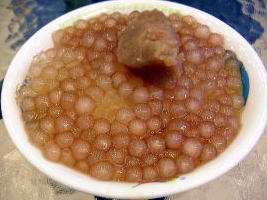 この日はWBC日本ー韓国戦の日。店頭のTVではこの試合を放映していて、お客さんはもちろん店員さんまで夢中でTVを見ていました。 続いて「鴉片粉圓」でデザートタイム。いかにもデザート専門店といった感じのお店で「浮くかも〜」と思いましたが、年配の女性も1人で入店していたのでそんなことありませんでした。ここでは看板メニューの「鴉片粉圓」をいただく。カキ氷の上にたっぷりのタピオカ、サービスでタロイモをのせてくれました。