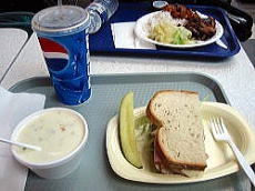 | 新しい部屋に荷物を移してからタクシーでブルバード・モールへ。チップ込みで$12でした。 入り口で地図を手に入れ、まずフードコートで食事をすることにしました。 フードコートはモールの西寄りにありました。窓が大きく天井からも明かりが入ってくる、開放的な場所です。 お店はハンバーガーやピザなどを中心に7〜8店ほどありました。